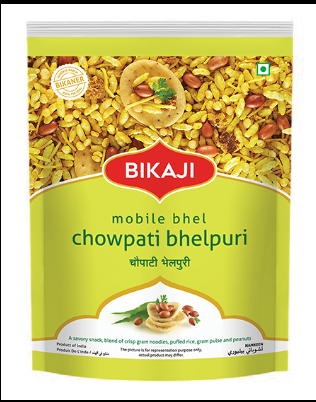 Bikaji Namkeen Chowpati Bhelpuri ek tasty aur chatpata Indian snack mix hai jo Mumbai ke famous Chowpati style bhelpuri ka authentic swaad ghar par hi laata hai. Isme crispy puffed rice (murmura), crunchy sev, roasted peanuts, aur masaledar namkeen ka perfect combination hota hai jo har bite me khatta-meetha aur teekha flavour deta hai. Yeh ready-to-eat snack hai, isliye ise seedha packet se enjoy kiya ja sakta hai ya phir chopped pyaaz, tamatar, hari chutney aur imli ki chutney ke saath mix karke fresh street-style bhelpuri banayi ja sakti hai.